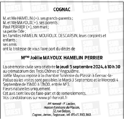 Cet espace « condoléances » est dédié à la mémoire de Madame Joëlle MAYOUX.