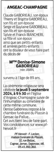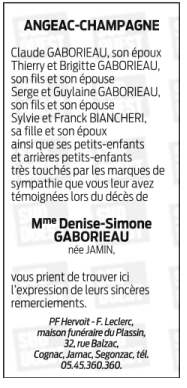 de Madame Denise GABORIEAU née JAMIN