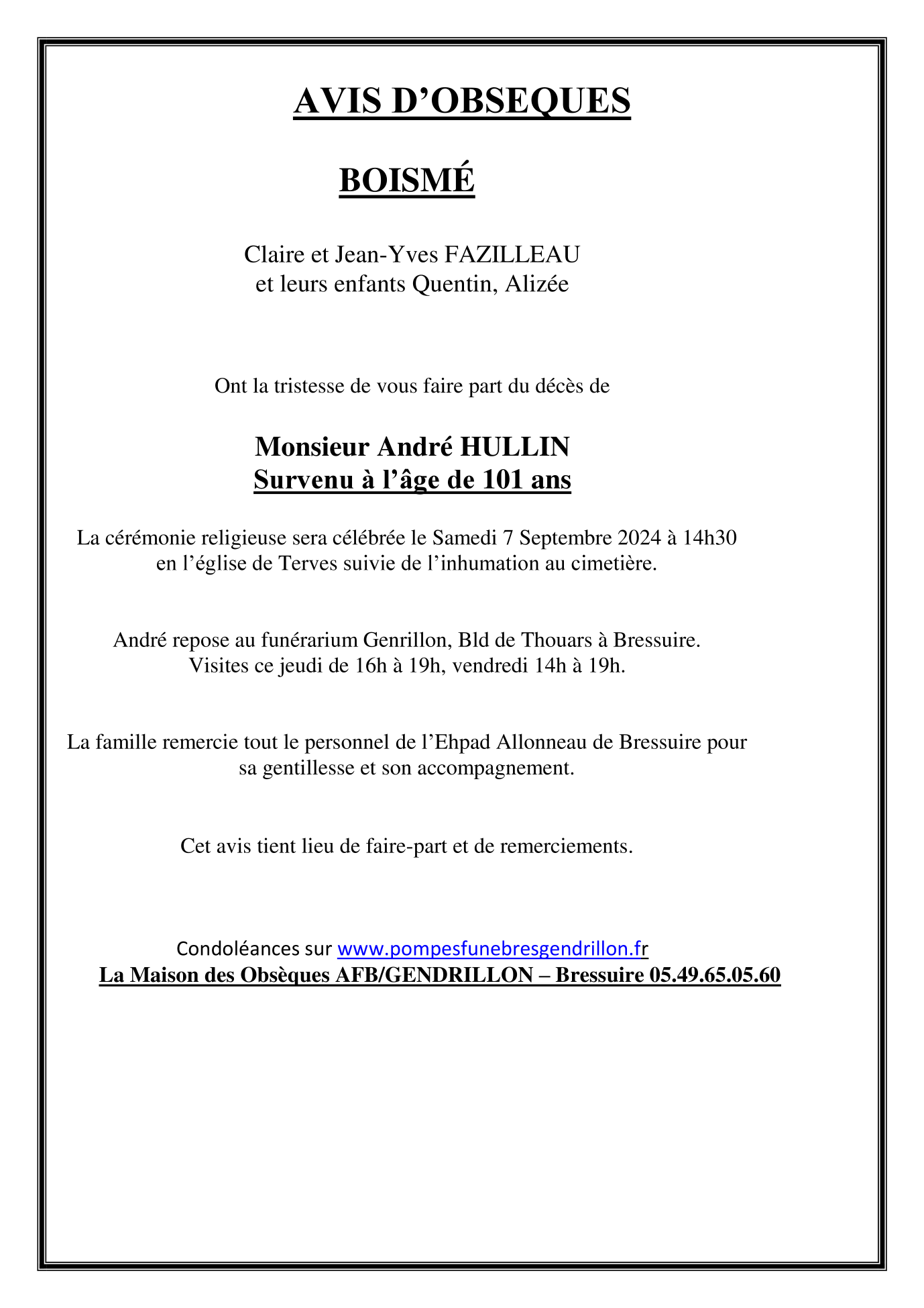 Annonce nécrologique