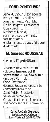 Cet espace « condoléances » est dédié à la mémoire de Monsieur Georges ROUSSEAU.