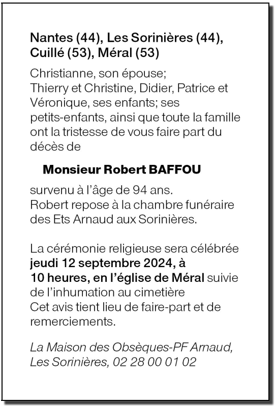 Cet espace « condoléances » est dédié à la mémoire de Monsieur Robert BAFFOU.