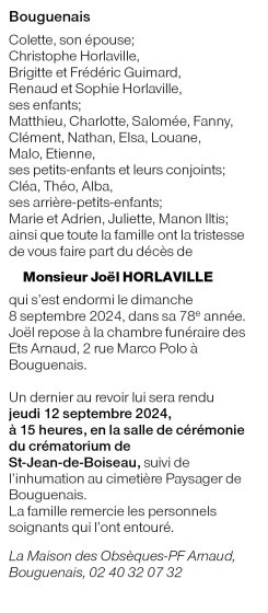 Cet espace « condoléances » est dédié à la mémoire de Monsieur Joël HORLAVILLE.