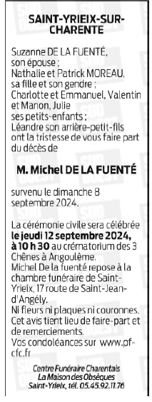 Décédé à Saint-Michel (16470) le dimanche 8 septembre 2024