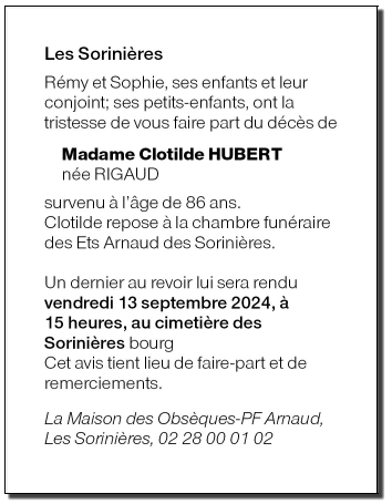 de Madame Clotilde HUBERT née RIGAUD
