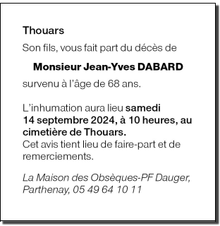 Cet espace « condoléances » est dédié à la mémoire de Monsieur Jean-Yves DABARD.