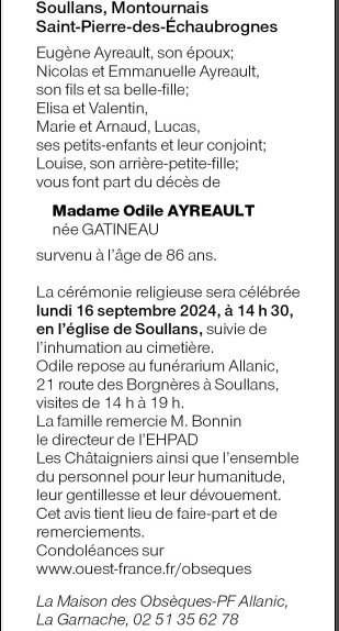 de Madame Odile AYREAULT née GATINEAU