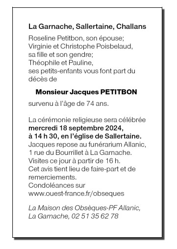 Cet espace « condoléances » est dédié à la mémoire de Monsieur JACQUES PETITBON.