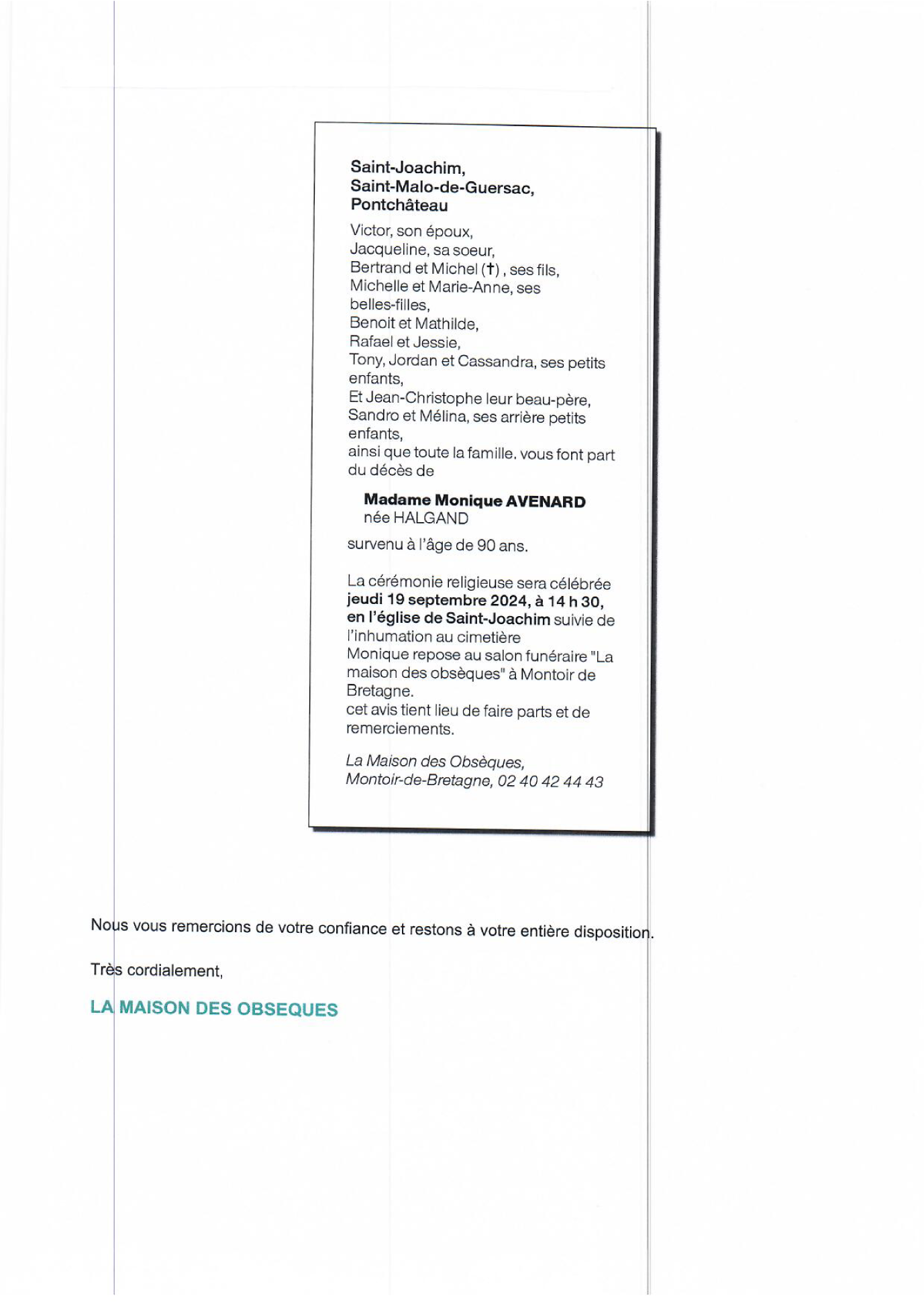de Madame Monique AVENARD née HALGAND
