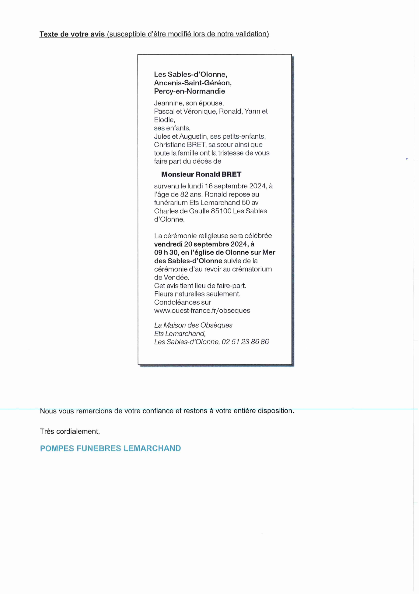 de Monsieur Ronald BRET