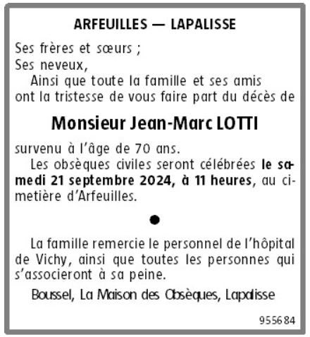 Cet espace « condoléances » est dédié à la mémoire de Monsieur Jean-Marc LOTTI.