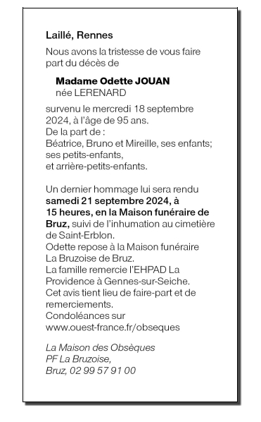 de Madame Odette JOUAN née LERENARD