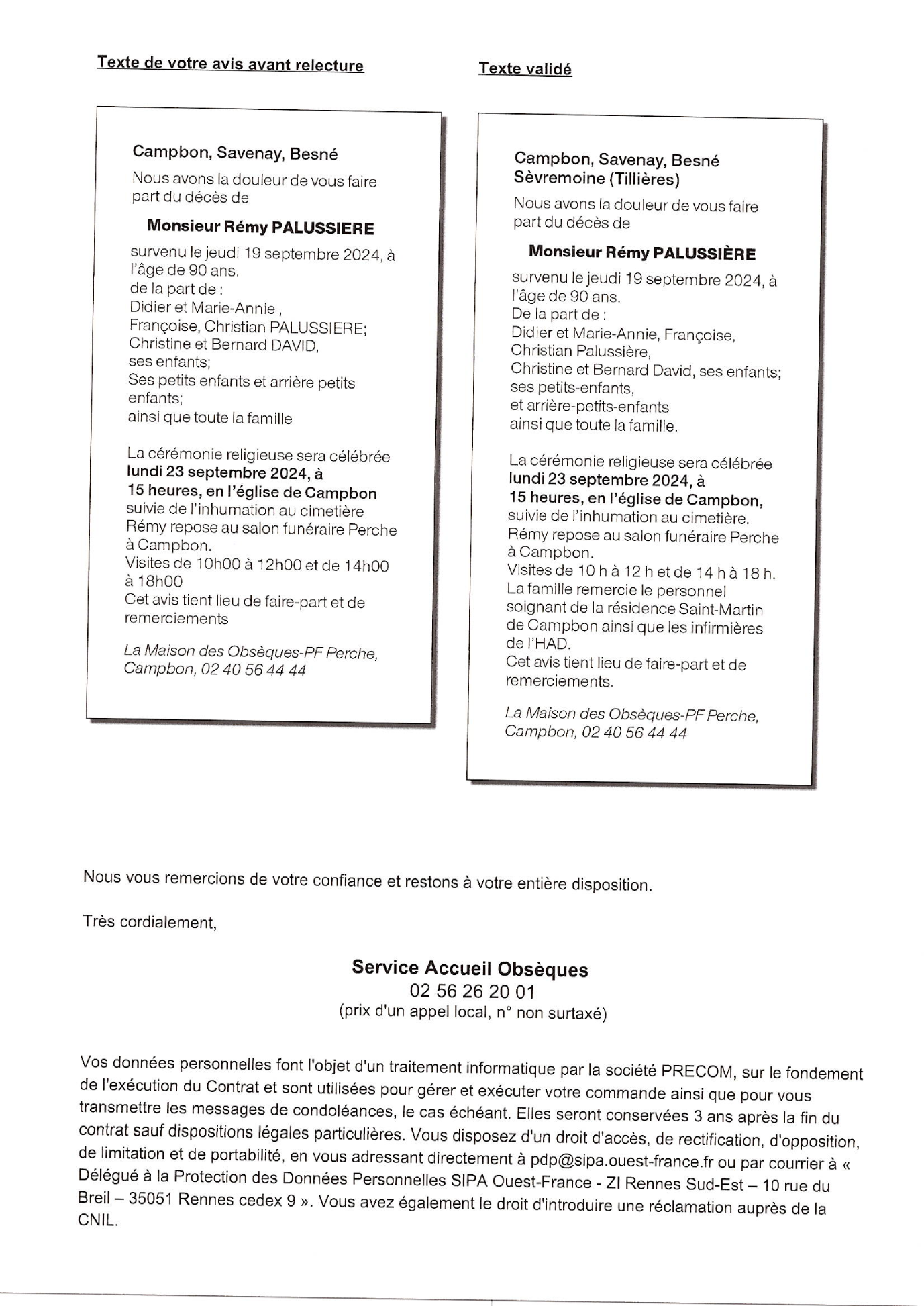 N’hésitez pas à renseigner cette page à vos connaissances. Ceux qui sont loin ou qui n’ont pas la possibilité de se joindre à la cérémonie trouveront ici une façon simple de montrer leurs sentiments à la famille dans ce moment difficile.