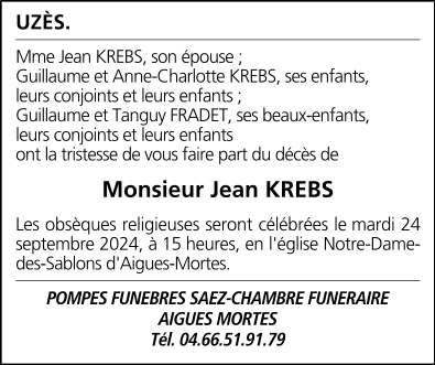 Cet espace « condoléances » est dédié à la mémoire de Monsieur Jean KREBS.