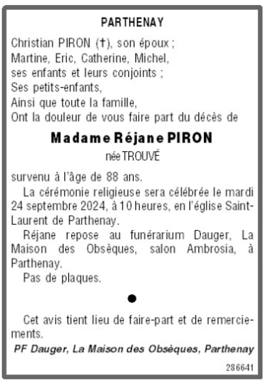 de Madame Réjane PIRON née TROUVÉ