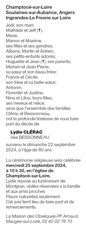 de Madame Lydie CLÉRAC née BESSONNEAU