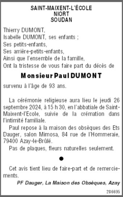 de Monsieur Paul DUMONT