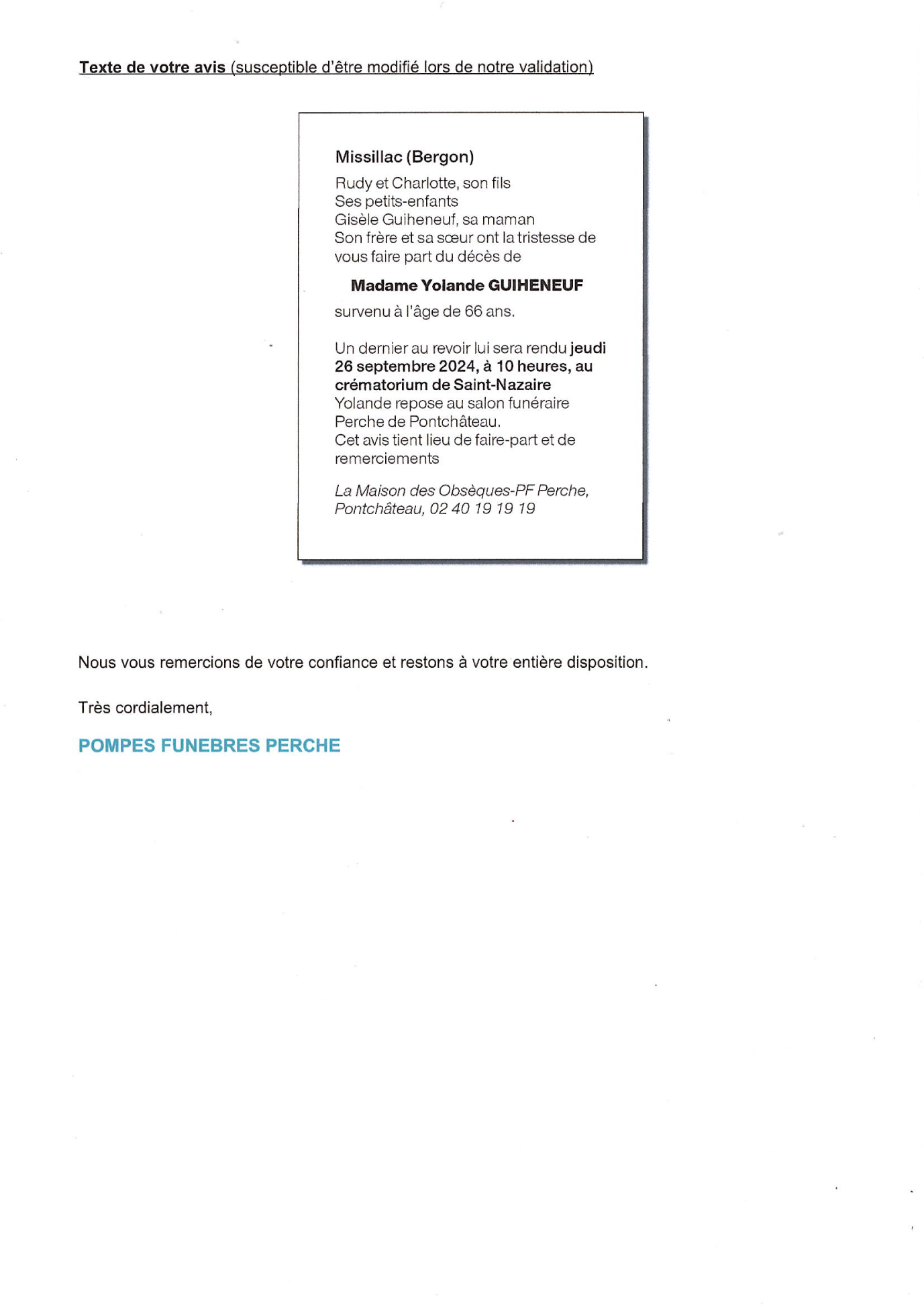 de Madame Yolande GUIHENEUF