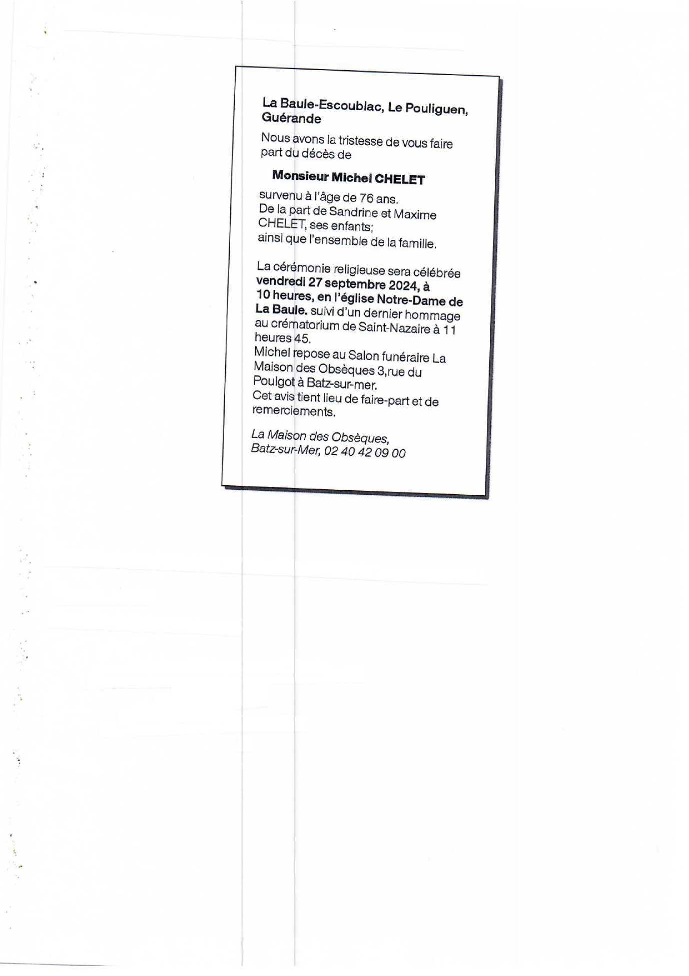 Cet espace « condoléances » est dédié à la mémoire de Monsieur Michel CHELET.