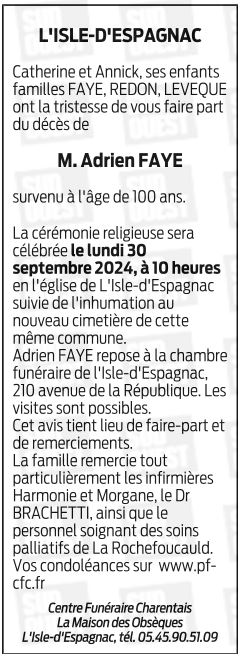 Cet espace « condoléances » est dédié à la mémoire de Monsieur Adrien FAYE.