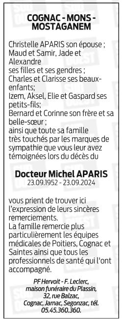 Décédé à Mons (17160) le lundi 23 septembre 2024
