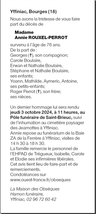 de Madame Annie ROUXEL née PERROT