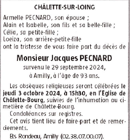 Cet espace « condoléances » est dédié à la mémoire de Monsieur Jacques PECNARD.