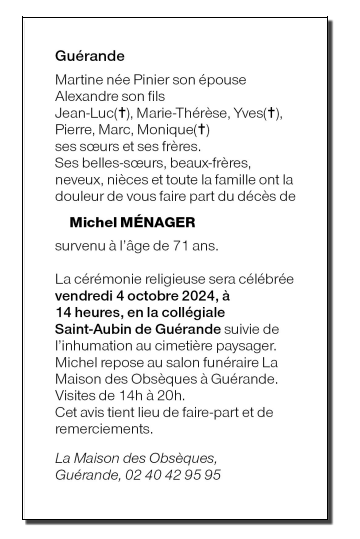 de Monsieur Michel MÉNAGER