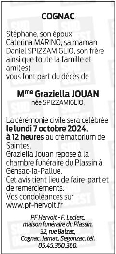 de Madame Graziella JOUAN née SPIZZAMIGLIO