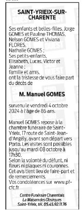 Cet espace « condoléances » est dédié à la mémoire de Monsieur Manuel GOMES.