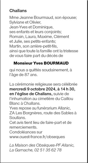 Cet espace « condoléances » est dédié à la mémoire de Monsieur Yves BOURMAUD.