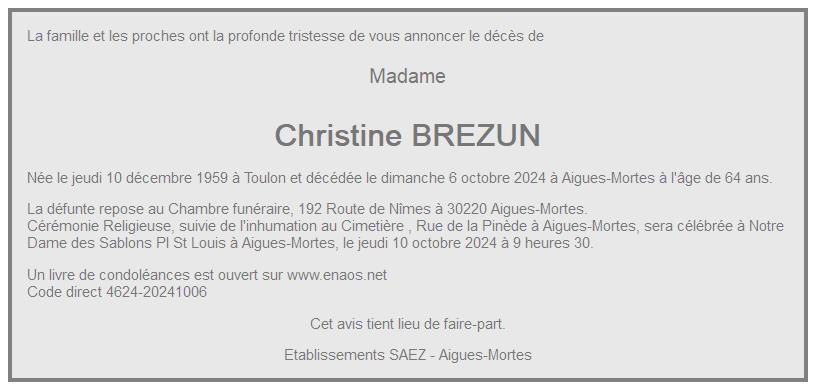 Cet espace « condoléances » est dédié à la mémoire de Madame Christine BREZUN.