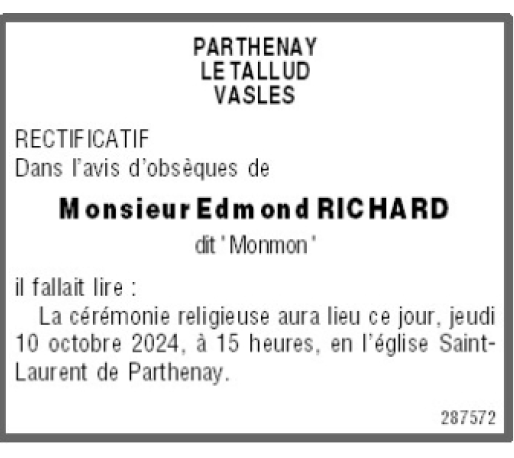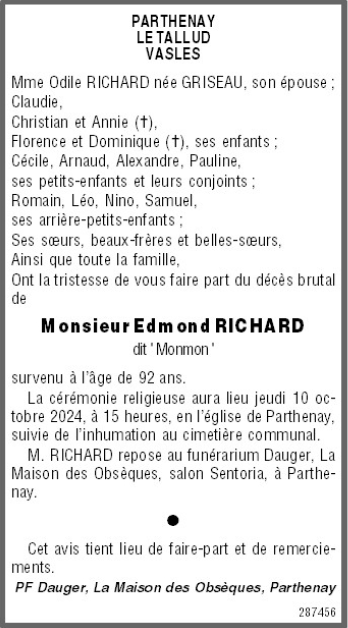 Décédé à Vasles (79340) le dimanche 6 octobre 2024