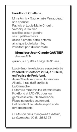 Cet espace « condoléances » est dédié à la mémoire de Monsieur Jean-Claude GAUTIER.