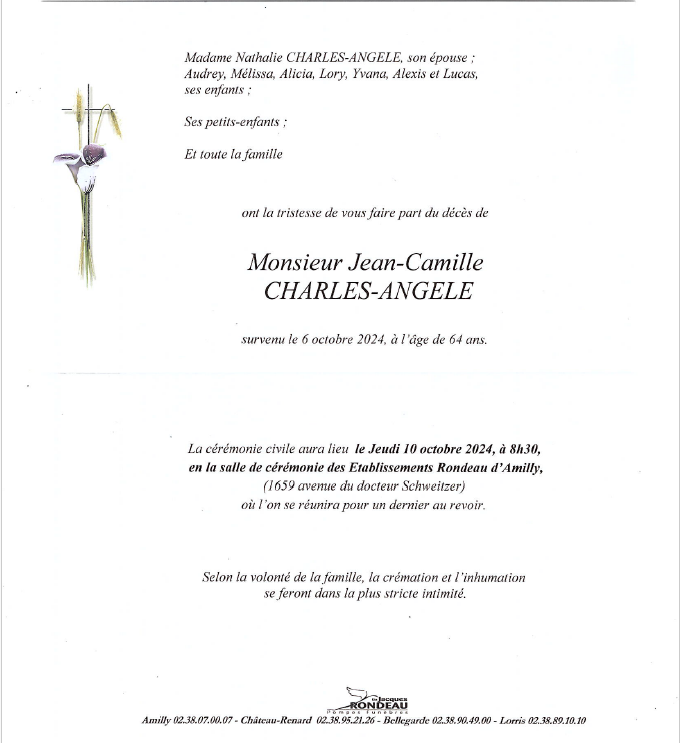 de Monsieur Jean-Camille CHARLES-ANGELE