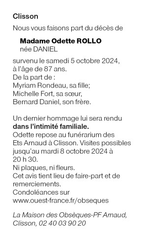 de Madame Odette ROLLO née DANIEL