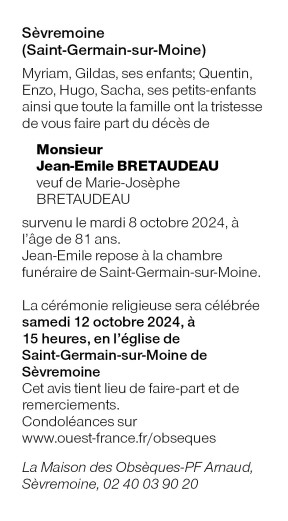 Cet espace « condoléances » est dédié à la mémoire de Monsieur Jean-Emile BRETAUDEAU.