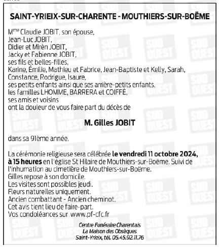 Cet espace « condoléances » est dédié à la mémoire de Monsieur Gilles JOBIT.