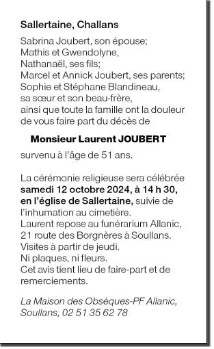 Cet espace « condoléances » est dédié à la mémoire de Monsieur Laurent JOUBERT.