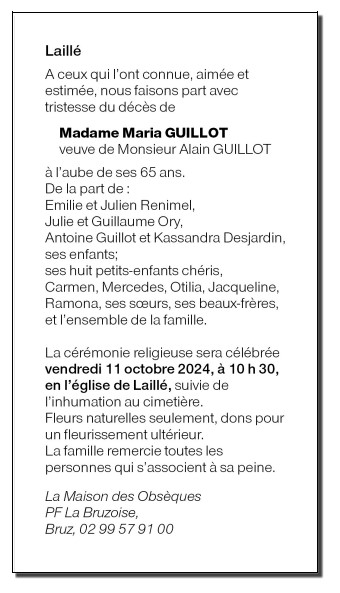 de Madame Maria-Lourdes GUILLOT née CID CID