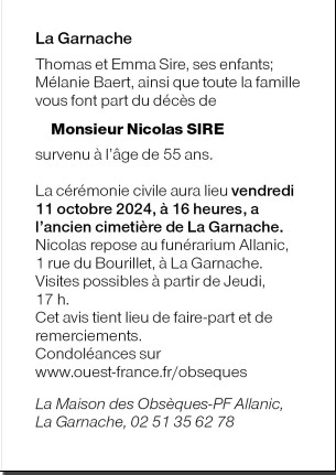 Cet espace « condoléances » est dédié à la mémoire de Monsieur Nicolas SIRE.