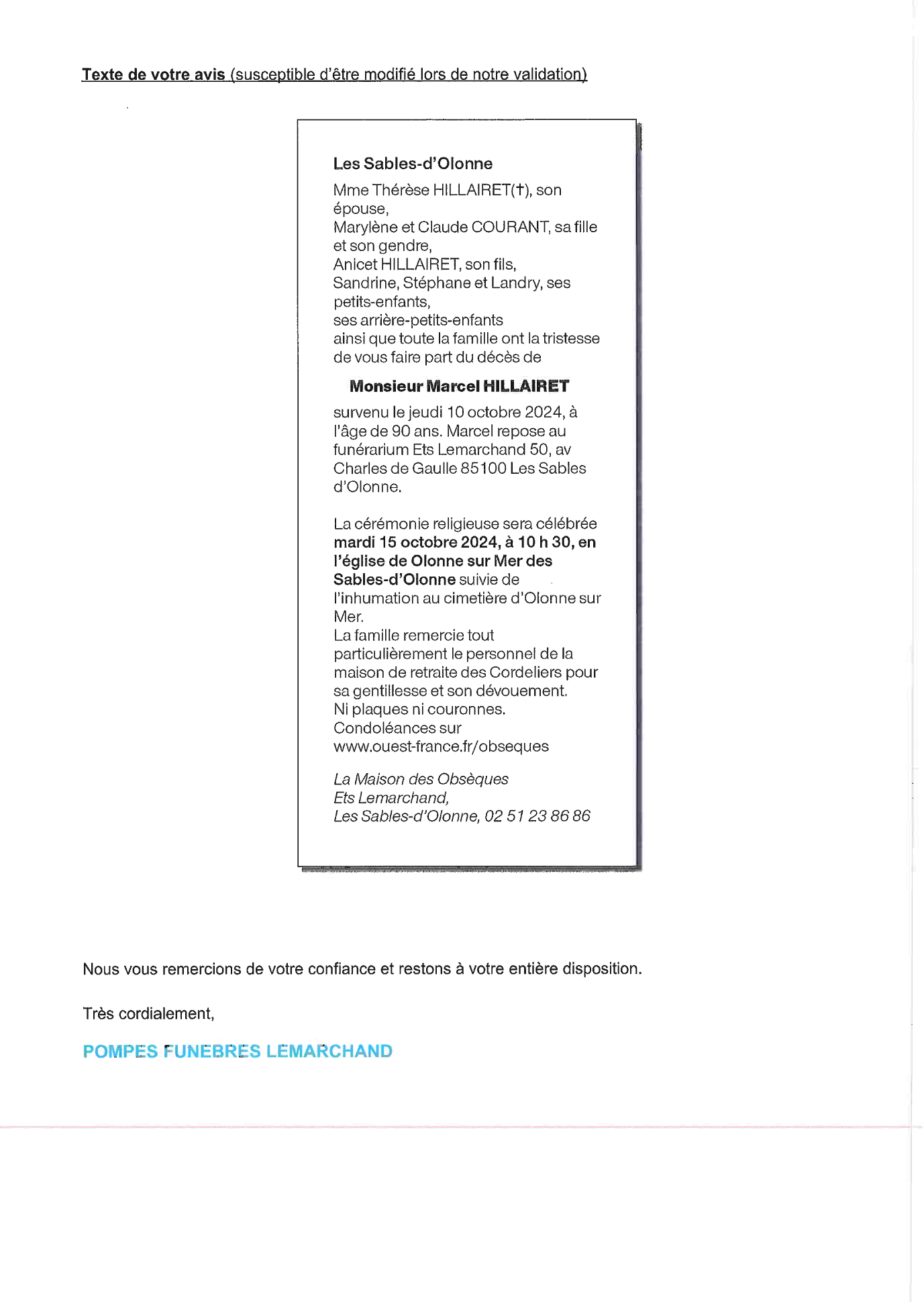 Cet espace « condoléances » est dédié à la mémoire de Monsieur Marcel HILLAIRET.