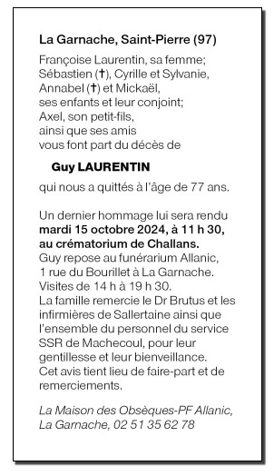 Cet espace « condoléances » est dédié à la mémoire de Monsieur Guy LAURENTIN.