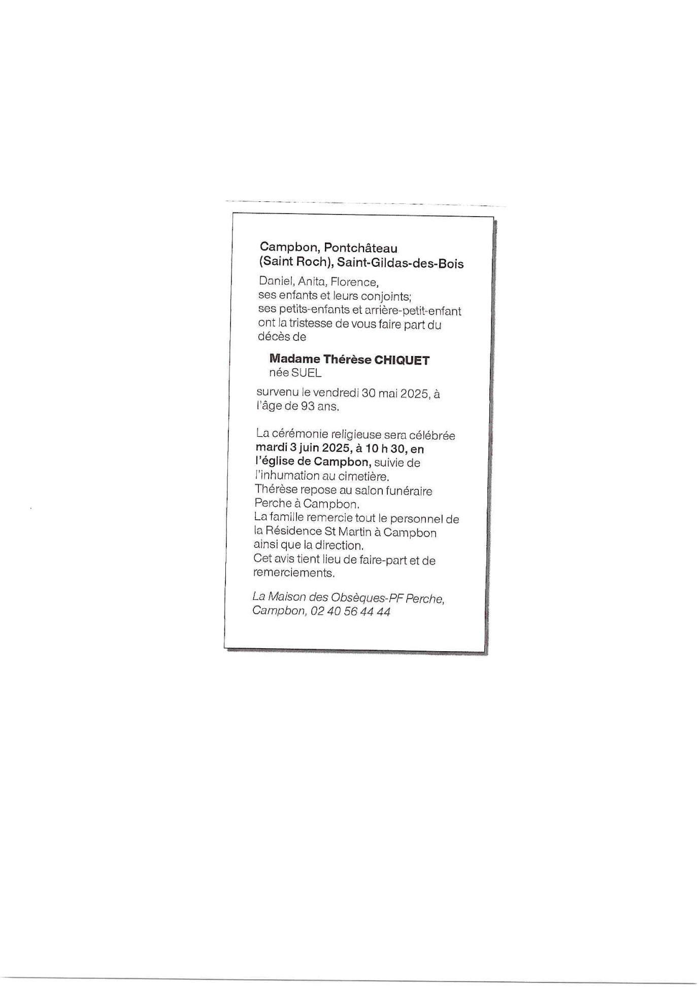 Décédé à Quilly (44750) le jeudi 10 octobre 2024