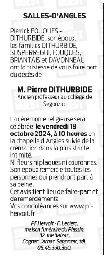 Décédé à Salles-d'Angles (16130) le vendredi 11 octobre 2024