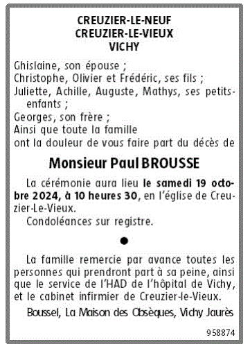 Cet espace « condoléances » est dédié à la mémoire de Monsieur Paul BROUSSE.