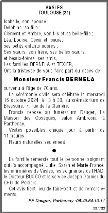 de Monsieur Francis BERNELA
