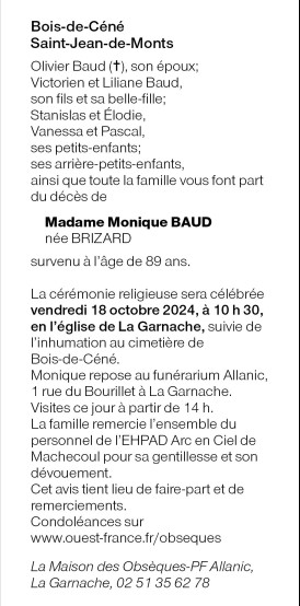 de Madame Monique BAUD née BRIZARD