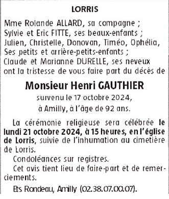 Cet espace « condoléances » est dédié à la mémoire de Monsieur Henri GAUTHIER.