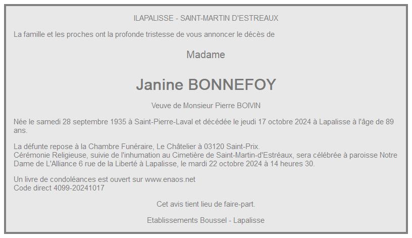 de Madame Janine BOIVIN née BONNEFOY