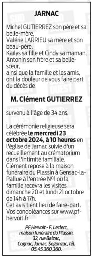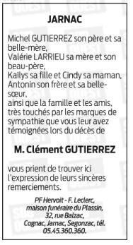 Cet espace « condoléances » est dédié à la mémoire de Monsieur Clément GUTIERREZ.